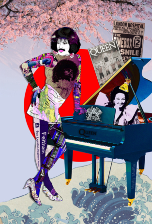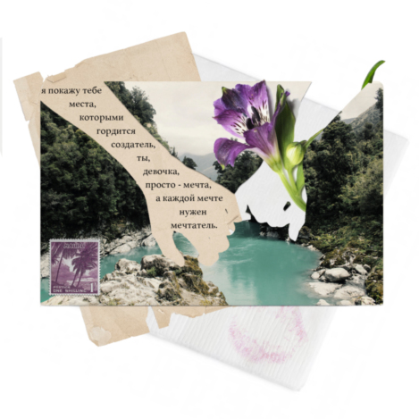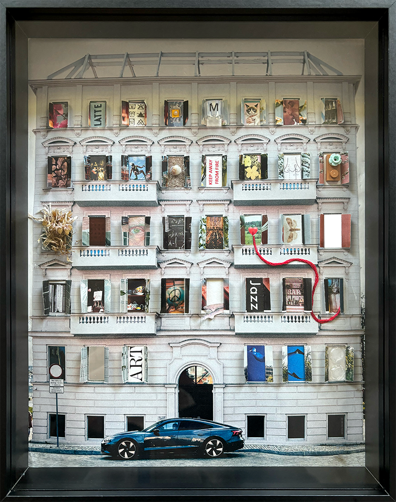 Analogue collage "The House of Thoughts", 23 x 28,5. Magazine clippings, sand, shell, lego details, dried flowers, film, cartoon switching mechanism, mirror and more:) Available for purchaise.